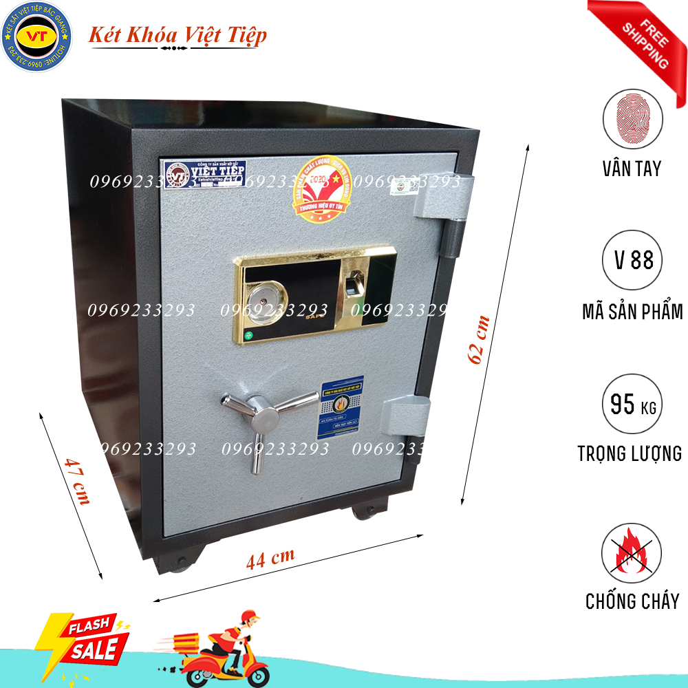 Két Sắt Vân Tay V88, Đen Ghi, Việt Tiệp, Nặng 95kg, Chống Trộm, Chống Cháy, An Toàn, Tiện Dụng, Bảo Mật, Chính Hãng, Hợp Phong Thủy [Miễn Phí Giao Hàng]